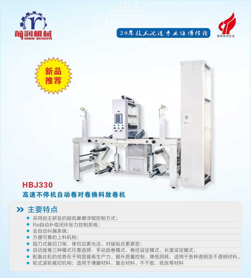3、Equipped with reliable and self-developed automatic roll changing function without glue