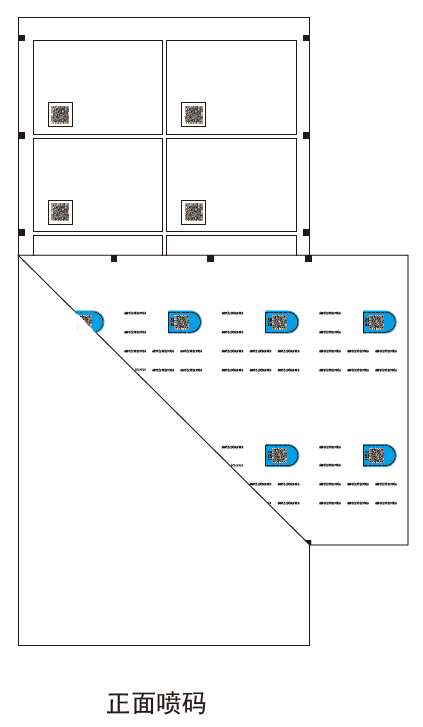 面層的背面噴印關(guān)聯(lián)變碼組合,然后,在正面噴印關(guān)聯(lián)碼,自動(dòng)復(fù)合,聯(lián)線完成,自動(dòng)翻轉(zhuǎn)前后校對(duì)